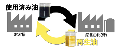 通常、再生重油としてリサイクル(サーマルリサイクル)されることが多い廃油。港北油化株式会社様では、使用済み潤滑油に油水分離、白土添加、フィルタープレスといった高度な再生処理(マテリアルリサイクル)を施すことで、再び潤滑油として蘇らせる「リユース(再利用)」を実現します。 |
