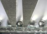 BGAやCSPなどのはんだボールを横から適当な治具で押し、 破壊時の強度を測定評価します。