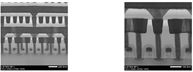 観察装置:TEM 検査対象:保護膜、絶縁膜、メタライゼーション、接続構造、Si基板、素子分離、チャネル構造 検出される欠陥要因:形成不良、形状異常、ボイド、クラック、結晶欠陥など |