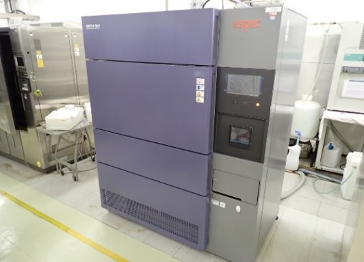 | 液槽熱衝撃試験 | TSB | エスペック | ・高温槽温度範囲 +60℃~+150℃ ・低温槽温度範囲 -65℃~0℃ ・試料移動時間 15秒以内 ・試料カゴサイズ W175×H175×D300[mm] ・耐荷重 5Kg |