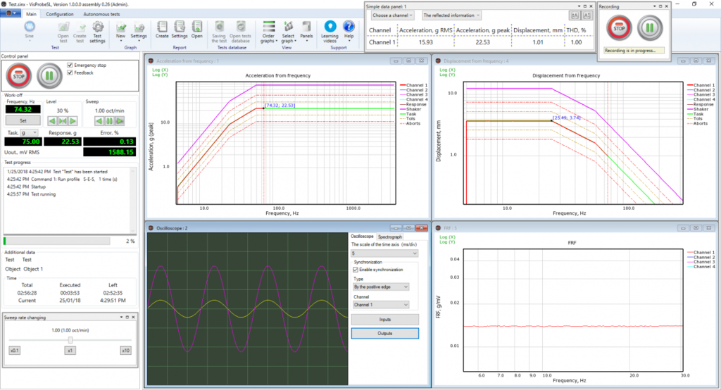 ユーザーのテスト内容により、完全なオーダーメードが可能 ・システム拡張性 1つのネットワークに最大8個のデバイス構成が可能、最大32チャンネル入力及び最大8チャンネルの出力が可能。 ・高レベル加振器の保護 全ての計算、安全チェックをコントローラー内蔵のDSPにより、直接制御。 ・MEMS & MIMO性能 最大8個の2軸及び3軸加振器、同様に、6軸の加振器を同時に制御が可能。 ・破損(損傷)防止 入力チェーンのガルバニック分離は、入力チェーンを損傷から効果的に保護することが可能。 ・キャリブレーション機能(オプション) 1個のユニットで加振器、トランスデューサー及びマイクロフォンのキャリブレーションが可能。 |