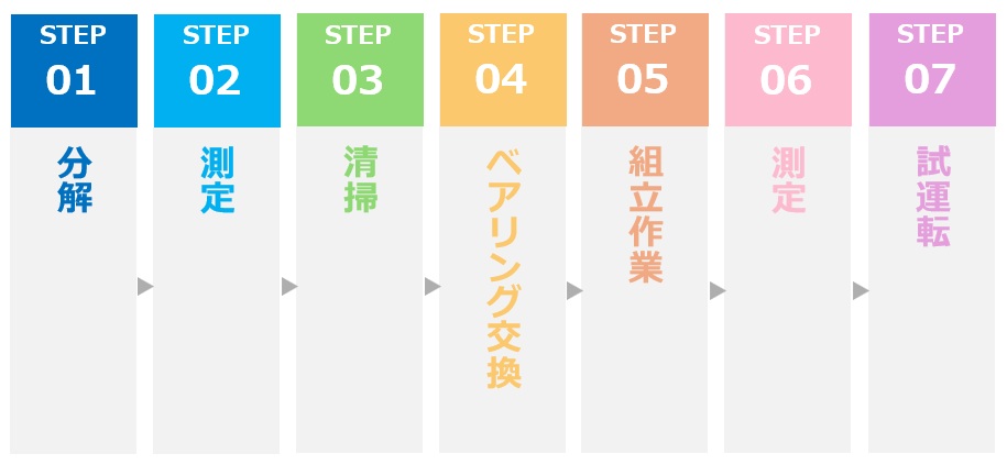 修理と新品交換ではスピンドルの仕様により、価格差はありますが、新品を購入することに比べると非常に安価に対応できます。平均的な納期やコストはスピンドルの仕様により変動されますので、まずは仕様のヒアリングをさせてください。