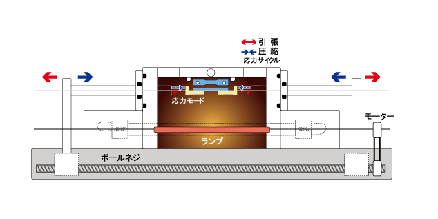 高性能な炉体により、自由度の高い炉体雰囲気・温度環境での引張圧縮試験を実現。