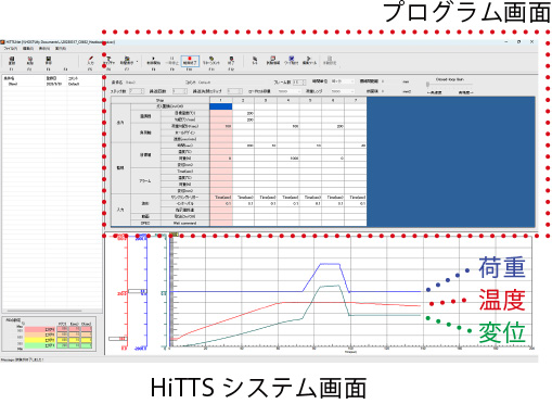 HiTTS(ヒッツ)は、汎用PCと試験機・温調ユニットを接続、引張・曲げ試験や温調の制御、試験中の物性データ・画像の取込を行うソフトです。