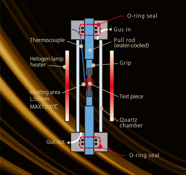試験ロッドは水冷・Oリング密封されており、ハロゲンランプで外側から集光加熱されます。