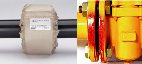 安全シールドは、高圧な流体が流れる配管接続部(フランジやバルブ)からの突発的な液体の漏洩による、作業者への危険を防止。酸・アルカリリークペイントは、液体の漏洩を即座に発見し、迅速な対応と安全環境の維持を可能にします。