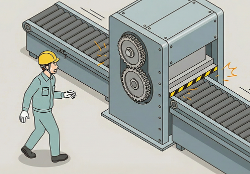 機械が稼働している危険エリアに誤って人が立ち入り、挟まれ事故が発生