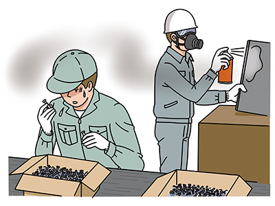 ・検品作業のように有害物質を使用しない作業と同じ場所で、他の作業者が有機溶剤を使用する作業をしたこと など
