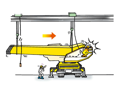 - このページは、厚生労働省「職場のあんぜんサイト」「移動式クレーン組立ラインで、天井クレーンで吊ったブームを台座に取りつける作業中、ブームと台座にはさまれる」を基に制作しています。