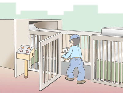 3 立ち入り禁止の柵はその理由を問わず開放されたときにはライン全体が停止するような構造とすること。