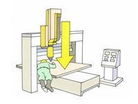 - このページは、厚生労働省「職場のあんぜんサイト」「NCルーターを使用して合板加工作業中、フレーム付近に近づいたため、移動してきたテーブルとフレームとの間に挟まれた」を基に制作しています。