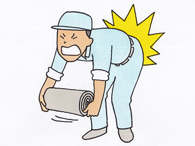 薄鉄板のコイル巻きを中腰の状態で抱えた際、背中から腰部にかけて痛みが生じた