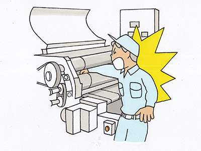 - このページは、厚生労働省「職場のあんぜんサイト」「チェーンベルトに詰まった不織布の綿を取り除く作業を行っていたところ、機械を停止しなかったため、手をロール機に巻き込まれた」を基に制作しています。