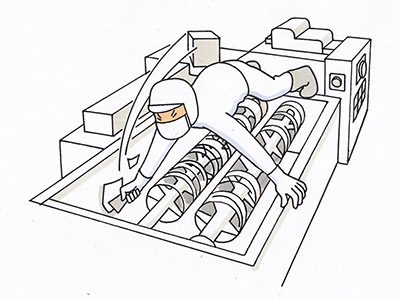 - このページは、厚生労働省「職場のあんぜんサイト」「食品加工用混合機内のそば粉等の原材料を掻き落とそうとして、腕が攪拌軸に巻き込まれた」を基に制作しています。