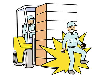 - このページは、厚生労働省「職場のあんぜんサイト」「フォークリフトにパレットを前方が見えなくなる程高く積み前進走行していた時、歩行中の被災者に接触し負傷させた。」を基に制作しています。