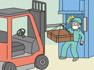 金属製品製造会社でプレス機械の金型交換時に、プレス機械とフォークリフトに載せた金型の間に挟まれて死亡した