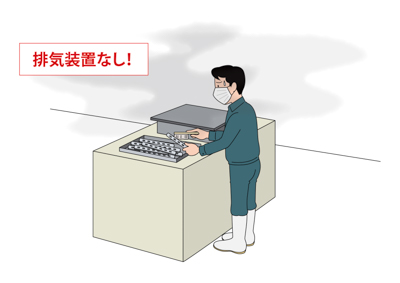 - このページは、厚生労働省「職場のあんぜんサイト」「ステンレス部品の汚れ落とし作業中に有機溶剤中毒」を基に制作しています。