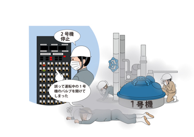 ・反応器が運転中であるにもかかわらず、バルブを開放したこと。また、反応器が運転中の場合にバルブを開放できない設計になっていなかったこと